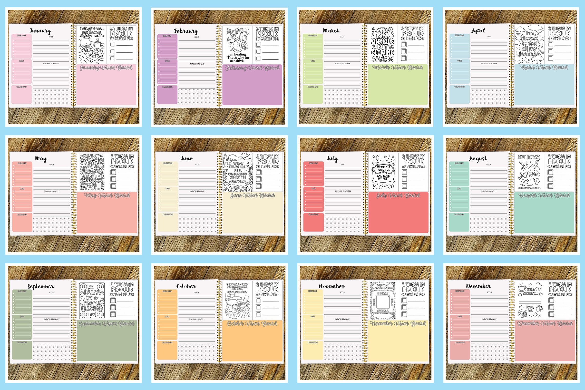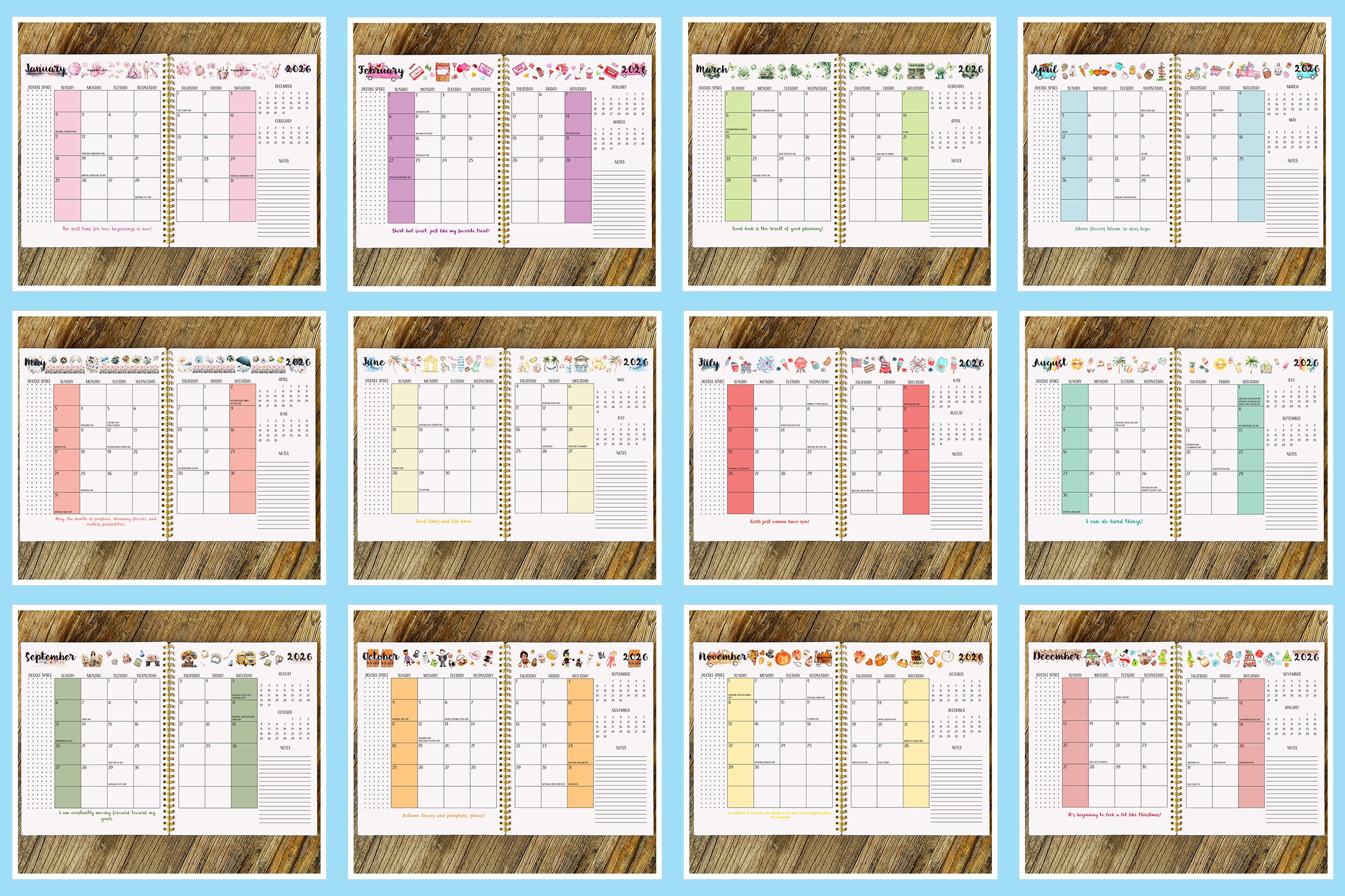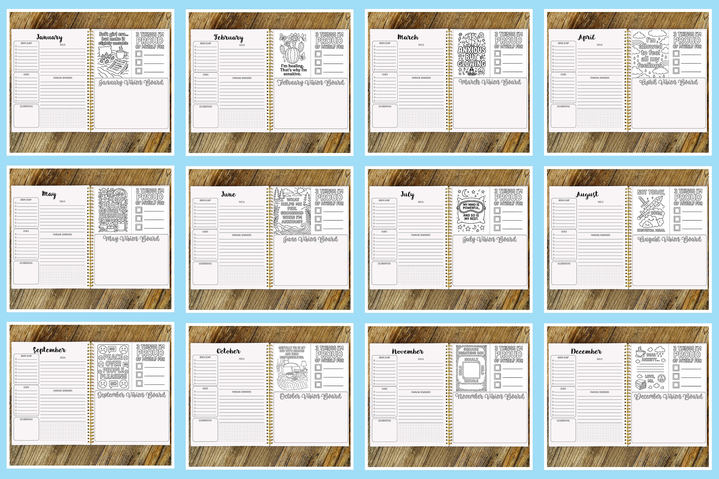 The Neurospicy Hardcover Planner is available in both COLOR and BLACK & WHITE. Each planner offers two cover style options—Limon Script or Bold Print. These font variations apply only to the “2026” text on the cover. Please refer to the slideshow below for a preview of the Monthly Calendars and Monthly Focus Pages.
