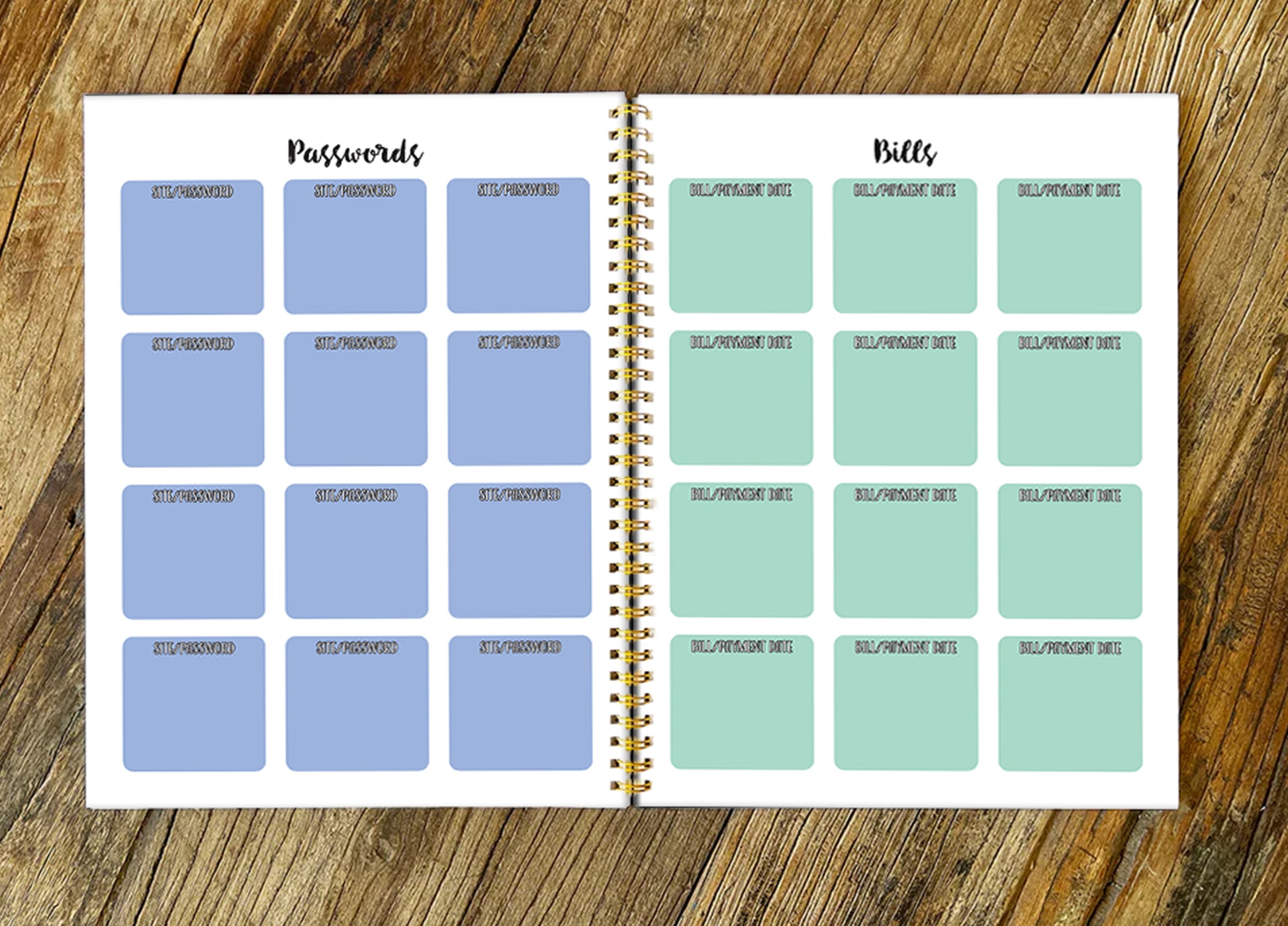 - Celebration & Important Dates Pages, Passwords & Bills Pages, Note Pages, Dot Grid Paper Pages, Graph Paper Pages: 2 Note Pages per month, 8 Note Pages at end of planner, 4 Pages of Dot Grid Paper at end of planner, and 4 Pages of Graph Paper at end of planner!